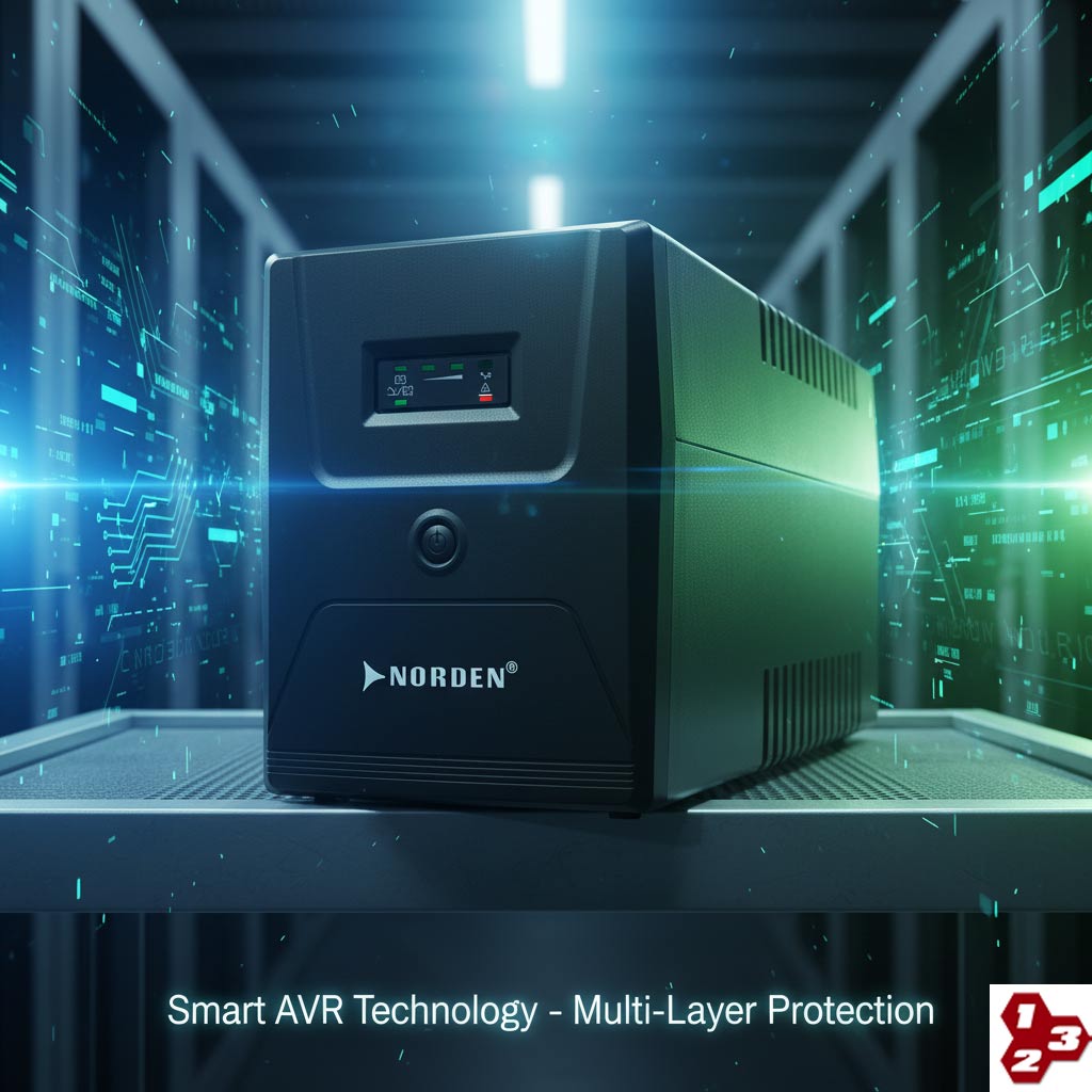 Với công suất thực lên đến 1200W, Norden CN2000N dễ dàng trở thành trung tâm năng lượng cho cả một văn phòng nhỏ. Nó có thể cung cấp nguồn điện dự phòng đồng thời cho một máy chủ, 2-3 máy trạm, hệ thống switch mạng và tổng đài điện thoại. Điểm sáng giá nhất chính là công nghệ Ổn áp tự động (AVR) hai chiều. Thay vì chỉ thụ động chờ mất điện để kích hoạt ắc quy, AVR của CN2000N chủ động theo dõi điện áp lưới. Khi điện áp xuống thấp, nó sẽ tự động kích hoạt mạch Boost để nâng áp lên mức an toàn. Ngược lại, khi điện áp tăng vọt, mạch Buck sẽ hạ áp xuống. Quá trình này diễn ra liên tục và hoàn toàn tự động, giúp các thiết bị của bạn luôn được tắm trong một dòng điện sạch và ổn định. Điều này không chỉ bảo vệ chúng khỏi hư hỏng mà còn tối ưu hóa hiệu suất hoạt động.
